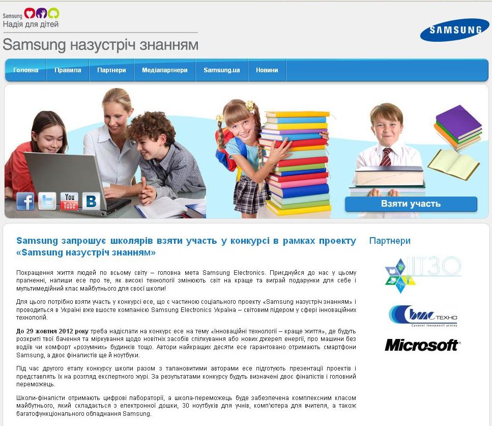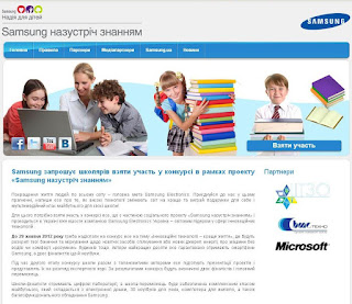Компанія "Samsung Electonics Україна"за підтримки Інституту інноваційних технологій і змісту освіти з 03 вересня по 26 листопада 2012 року проводить конкурс"Samsung назустріч знанням".